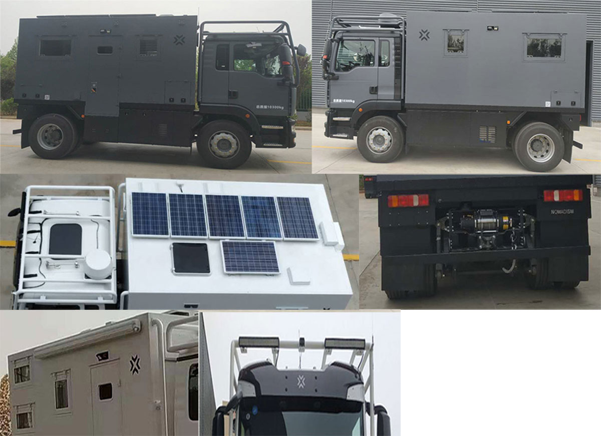 | 1、側(cè)防護為裙邊結(jié)構(gòu),材質(zhì)為高強度鋁合金,后防護材質(zhì)為鋼質(zhì),斷面尺寸(長×寬)mm:110×50,離地高度:440mm,連接方式均為螺栓連接;2、配備桌椅,廚具,睡具,衛(wèi)生設(shè)施等旅居生活設(shè)施;3、車輛選裝遮陽篷,選裝左右側(cè)窗戶數(shù)量及位置,選裝車廂門的位置,選裝絞盤安裝位置;選裝車頭燈具,僅限人員在野外非道路狀況下工作和生活照明使用;4、車頂可選裝排氣風(fēng)扇、太陽能電池,頂部選裝排氣風(fēng)扇和太陽能電池對應(yīng)整車高度為3410mm;5、ABS系統(tǒng)型號為:4460046300, 生產(chǎn)廠家為:威伯科汽車控制系統(tǒng)(中國)有限公司;6、僅選用軸距3600mm,外形尺寸長/后懸對應(yīng)關(guān)系為:5995/965;7、發(fā)動機MC07.28-50的凈功率為203kW,發(fā)動機MC07.31-50的凈功率為225kW. |