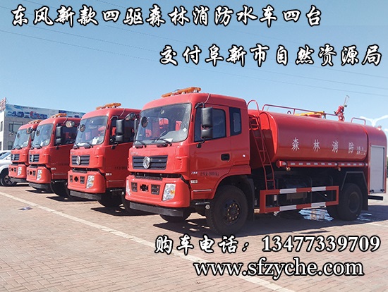 遼寧省阜新市自然資源局下屬的林業(yè)和草原局森林防火辦公室采購的東風(fēng)新款四驅(qū)森林消防水罐車具體參數(shù):東風(fēng)四驅(qū)越野森林消防水罐車_東風(fēng)11.1噸四驅(qū)消防水車_國五四驅(qū)越野森林滅火水車_東風(fēng)4×4越野SCS5183GPSEQ型四驅(qū)綠化噴灑車簡介:采用東風(fēng)EQ2180GD5DJ型越野汽車底盤,東風(fēng)153寬體駕駛室(選裝D913新款駕駛室),4×4驅(qū)動(dòng),康明斯ISB190 50國五發(fā)動(dòng)機(jī),六檔變速箱,東風(fēng)商用車橋,前驅(qū)動(dòng)橋3.8噸,后橋10噸,10.00R20輪胎,軸距4500mm,電動(dòng)玻璃,方向助力,斷氣剎,ABS。罐體采用優(yōu)質(zhì)碳鋼Q235板材,板材厚度4mm,罐體容積11.1立方,安裝夾心取力器,后置泵箱,消防栓接口左右各一個(gè),消防炮采用PS30-50D消防水炮,流量40L/S/1.0MPa 水射程:≥50m,消防泵采用常壓消防泵型號:CB10/40車用消防泵,流量:40L/s,壓力:1.0MPa,駕駛室頂部安裝長條警燈帶喊話器,全車顏色橘紅,兩側(cè)噴涂白色森林消防字樣。