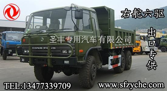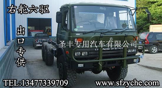 東風(fēng)右舵出口專供六驅(qū)越野卡車(chē),可在此底盤(pán)基礎(chǔ)上改裝右舵越野油罐車(chē),右舵越野灑水車(chē),右舵越野廂式車(chē),右舵越野冷藏車(chē),右舵越野自卸車(chē),右舵越野隨車(chē)吊等各種特種作業(yè)專用車(chē)型。