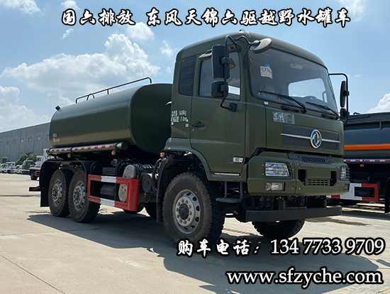 國六排放潤知星牌SCS5165GPSDFV6型六驅(qū)越野綠化噴灑車_東風天錦六驅(qū)森林消防水罐車_六驅(qū)園林綠化灑水車主要用于城鄉(xiāng)園林綠化灑水,噴藥等;主要裝置為水罐及泵.隨底盤選裝駕駛室.罐體有效容積8.7立方米.罐體外形尺寸(長×長軸×短軸)(mm) 4200×2350×1300.側(cè)、后防護材料為Q235B,側(cè)、后防護與車架焊接連接.后部防護裝置斷面尺寸(寬×高)50×120(mm),后部防護離地高度:460mm.ABS型號/生產(chǎn)廠家:3631010-C2000/東科克諾爾商用車制動系統(tǒng)(十堰)有限公司。東風天錦六驅(qū)越野綠化灑水車上裝配置:罐體采用優(yōu)質(zhì)碳鋼QB235板材,板材厚度4mm,罐體容積8.7立方,安裝取力器,60-90威龍大功率水泵可泵進泵出,后置工作平臺帶水炮射程25米,消防栓接口左右各一個,選裝駕駛室頂部安裝長條警燈帶喊話器,全車顏色軍綠,兩側(cè)噴涂白色森林消防字樣等。