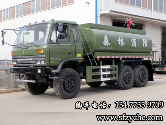 東風(fēng)六驅(qū)越野SCS5225GPSEQ型消防水罐車:采用東風(fēng)EQ2220GD5DJ型越野汽車底盤,東風(fēng)D913豪華駕駛室,6×6驅(qū)動,康明斯ISB190 50國五發(fā)動機(jī),六檔變速箱,315/80R22.5 20PR越野胎,軸距3500+1250mm,加厚雙層大梁,電動玻璃,方向助力,斷氣剎,ABS。罐體采用優(yōu)質(zhì)碳鋼Q235板材,板材厚度4mm,罐體容積12.1立方,安裝夾心取力器,后置泵箱,消防栓接口左右各一個,消防炮采用PS30-50D消防水炮,流量40L/S/1.0MPa 水射程:≥50m,消防泵采用常壓消防泵型號:CB10/40車用消防泵,流量:40L/s,壓力:1.0MPa,駕駛室頂部安裝長條警燈帶喊話器,全車顏色橘紅,兩側(cè)噴涂白色森林消防字樣。