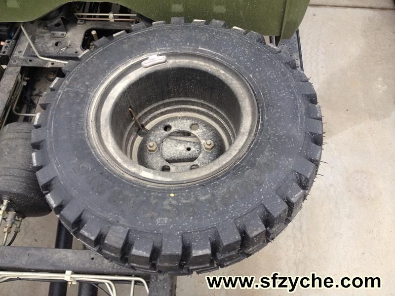 11R18型越野胎主要適用于軍用車輛行駛,可同時滿足軍用車輛在好路面上的高速行駛及在路況較差或無路情況下的越野行駛。該胎花紋采用無向塊狀設(shè)計,主行駛面花紋溝深度較淺且以縱向花紋溝為主,橫向花紋溝寬度較小,可提高輪胎的高速行駛性能、乘坐舒適性和操作穩(wěn)定性;胎肩部位的花紋以橫向花紋溝為主,花紋溝較寬較深,在越野時,對路面的抓著力強(qiáng)大,牽引力優(yōu)越、通過性能好,同時有利于花紋的散熱、排水和自潔性能。東風(fēng)越野胎:m.anuorz.com