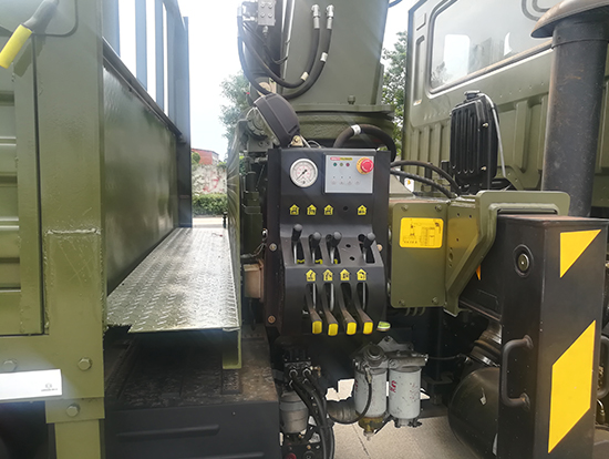 3. 采用三一5噸直臂式隨車吊,SPS12500型三一原廠吊機,吊機自重2.27噸,最大起重質(zhì)量5噸,四節(jié)臂,舉升高度13.4米,工作半徑11.9米,一體式回轉(zhuǎn),車廂尺寸4.25米,遠程油門控制,下操作,選裝液壓后支腿,上操作高空座椅。