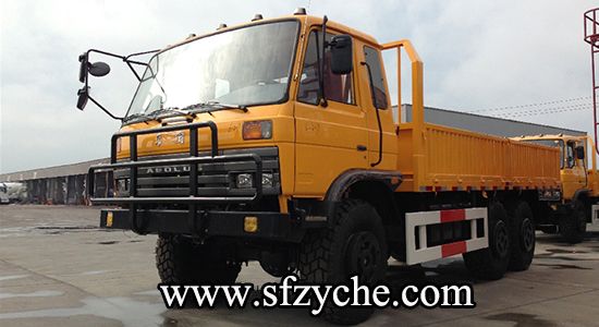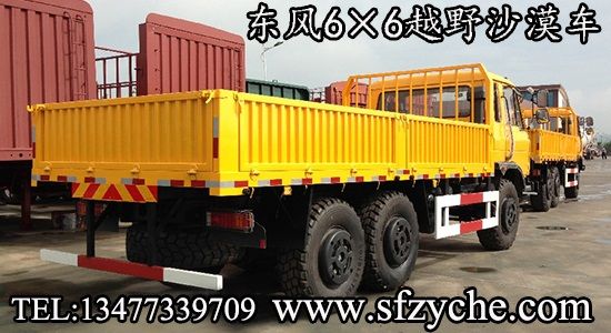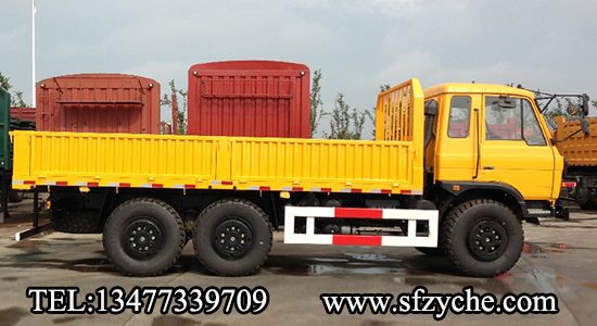 2、詳細配置:平頭一排半駕駛室,6*6驅(qū)動,康明斯190馬力,韶齒6檔變速箱,斷氣彈簧制動,貫通式中后驅(qū)動橋,12.5R20越野胎,軸距 3500+1250mm,加厚雙層大梁,貨箱4850mm,帶軍用保險杠。(新款仿天錦駕駛室加價1.5萬元)東風(fēng)越野卡車:m.anuorz.com