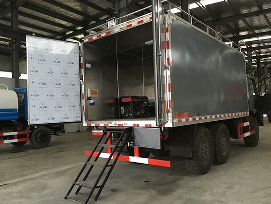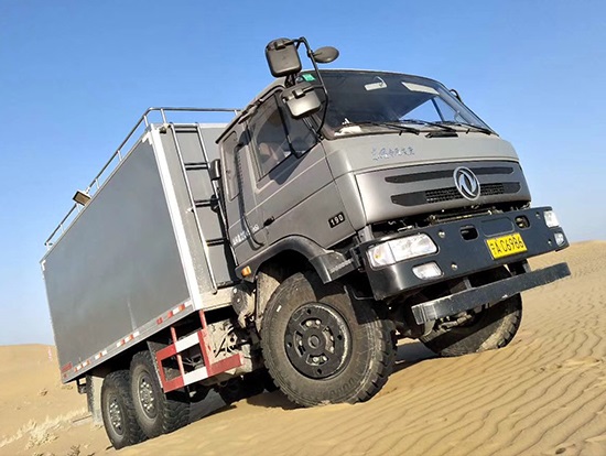 東風(fēng)六驅(qū)國(guó)五越野廂式車簡(jiǎn)介:采用東風(fēng)原廠六驅(qū)國(guó)五越野底盤EQ2220GD5DJ型,駕駛室為老款153,新款D913兩種可以選擇,康機(jī)190馬力帶增壓,機(jī)械式六檔變速箱,3.5噸軍檢分動(dòng)箱,4.5噸雙聯(lián)式軍用驅(qū)動(dòng)前橋,5噸軍用貫通式雙后橋,方向助力,離合助力,前橋介入高低檔均采用電控式,315/80R22.5越野輪胎,軸距3500+1250mm,ABS,隨車工具及備胎各一套。