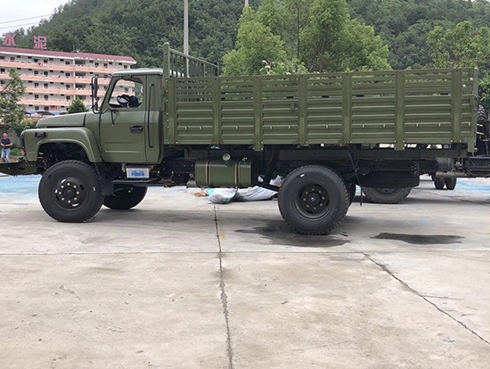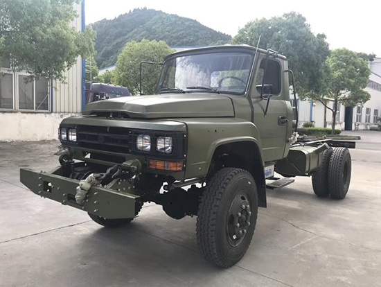 東風(fēng)牌EQ1093F型四驅(qū)載貨汽車詳細(xì)配置:采用康明斯B170-33柴油發(fā)動機(jī),機(jī)械式六檔變速箱,軸距3950mm,單片干式φ325mm離合器,2.7T驅(qū)動前橋, 7.8T驅(qū)動后橋,232×75×6.5 mm車架,9.00-20尼龍?zhí),東風(fēng)140尖頭單排駕駛室,斷氣剎,動力轉(zhuǎn)向。